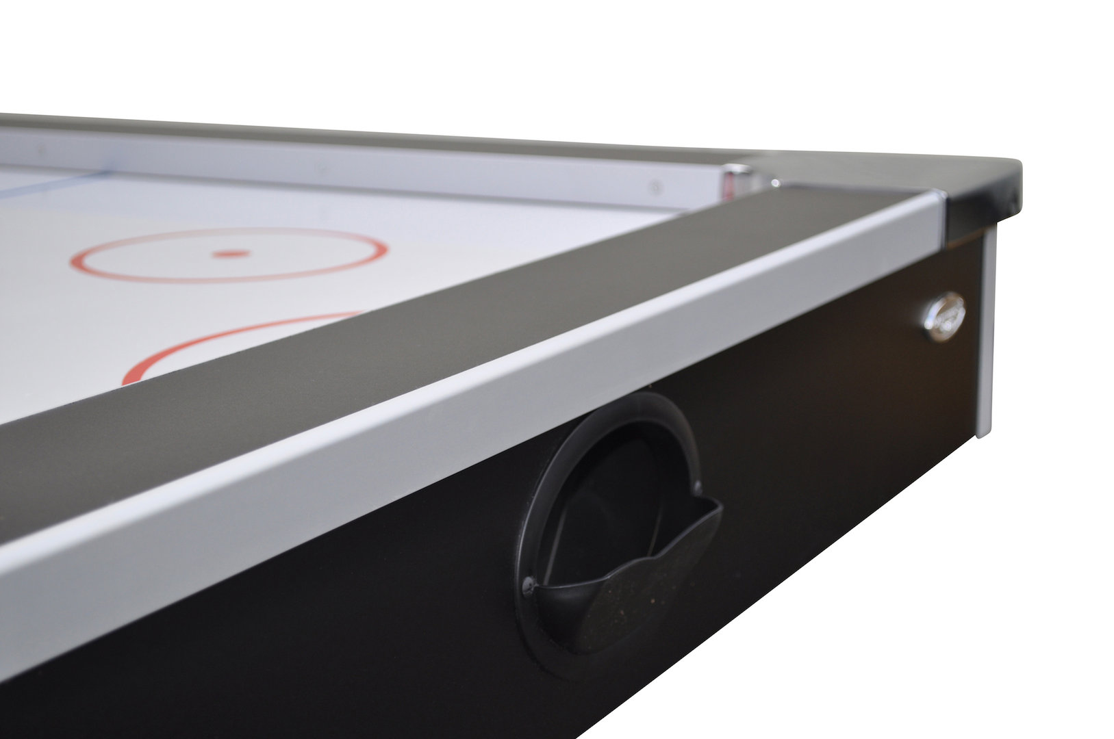 Equipped with height-adjustable feet the 7" BEX airhockey table Coliseum II suits perfect for leisure rooms. The enforced goals provide additional resistance. Two powerful 230V blower systems guarantee a fluent playing-experience. The table can be ordered with either a white plastic playing-surface or one made from stainless steel.
