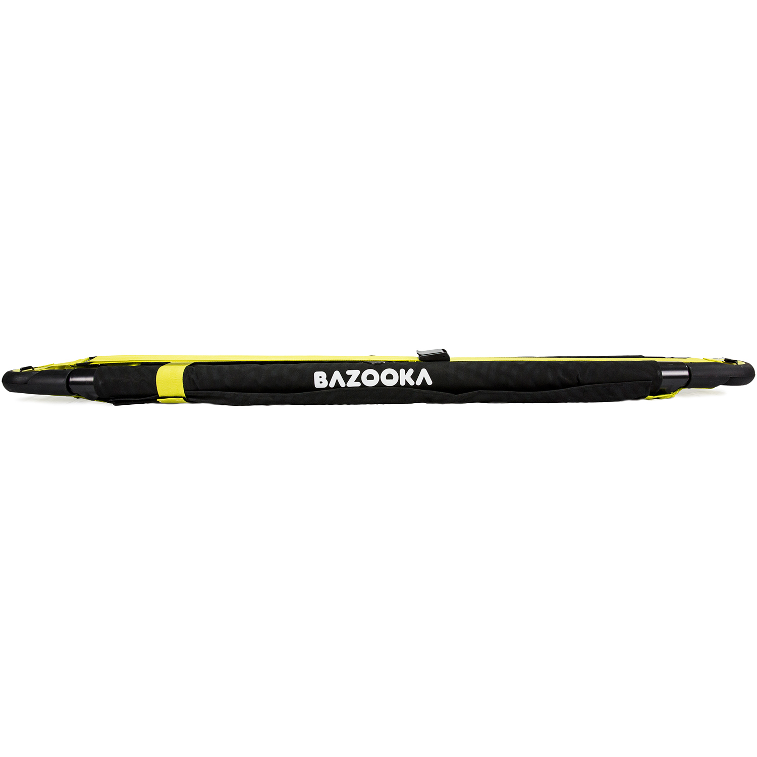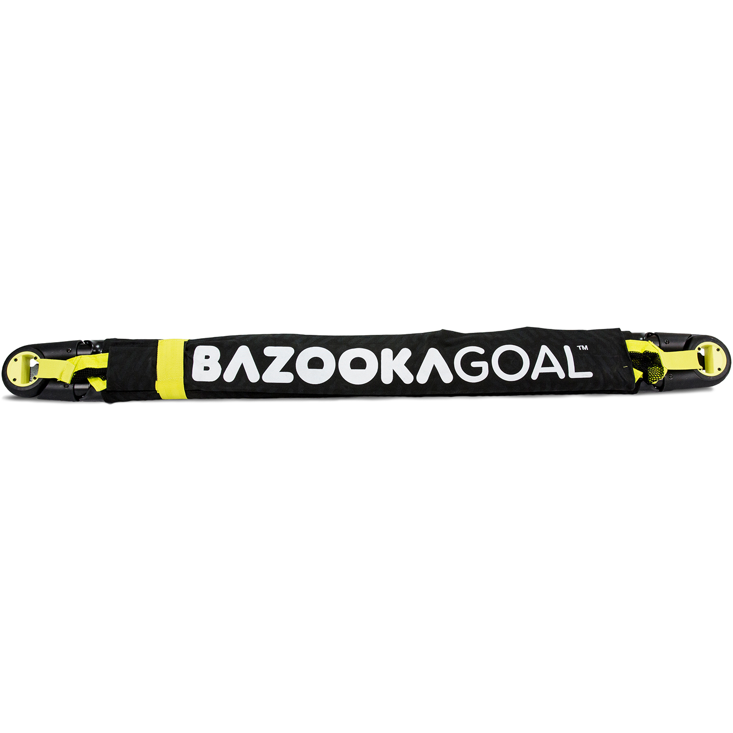 The Bazooka goal with a size of 120 x 75 cm is a unique folding soccer goal. The patented telescopic poles allow you to fold the goal into a super compact size, the net becomes the carrying bag and with the shoulder strap the goal is easily portable. The Bazooka goal is quickly set up and folded again and can be stored and transported in a space-saving manner. The soccer goal is stable, compact, and has a solid frame. The great stability ensures that the Bazooka goal on any surface and under all weather conditions can be used without the goal need to be anchored. The compact and solid frame is made of high quality composite materials, making the Bazooka goal very durable. The patented spring system bends the frame when you touch it, this prevents injuries and makes it safe for even the youngest players.