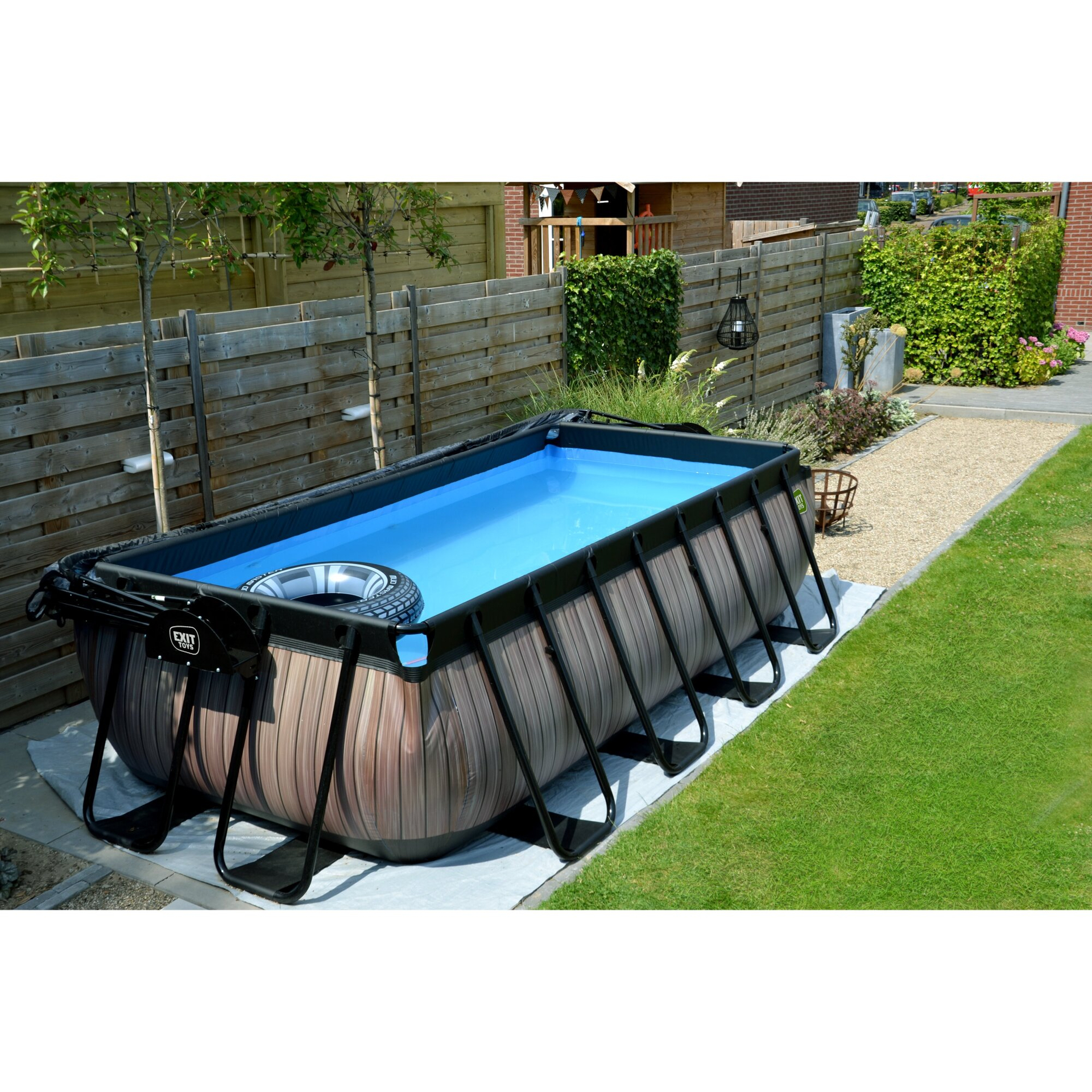EXIT Wood pool 400x200x100cm with sand filter pump - brown