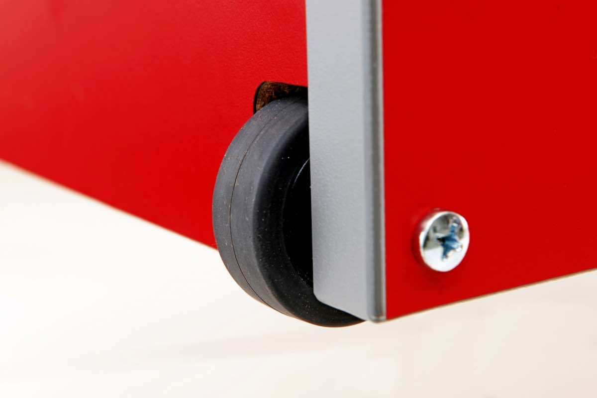 The legs of the foosball table Smart by FAS can be folded into the corpus fast and easily. Due to the tansport-wheels the Smart can be moved easily. The superimposed banks provide, in connection with the sandblasted playing-field, a Italian playing-experience. The goalie is not 360° rotatable. The Smart can be delivered with telescope- or full-metal-bars. The unbreakable figures are mounted onto the bars. Furthermore the Smart is equipped with manual scoring-units as well as ball-returns behind the goal.