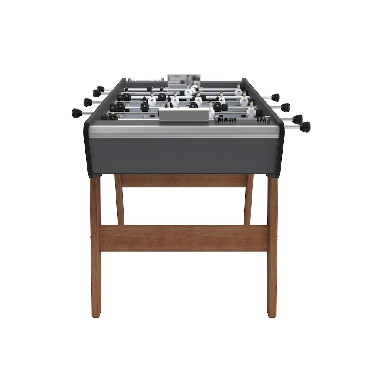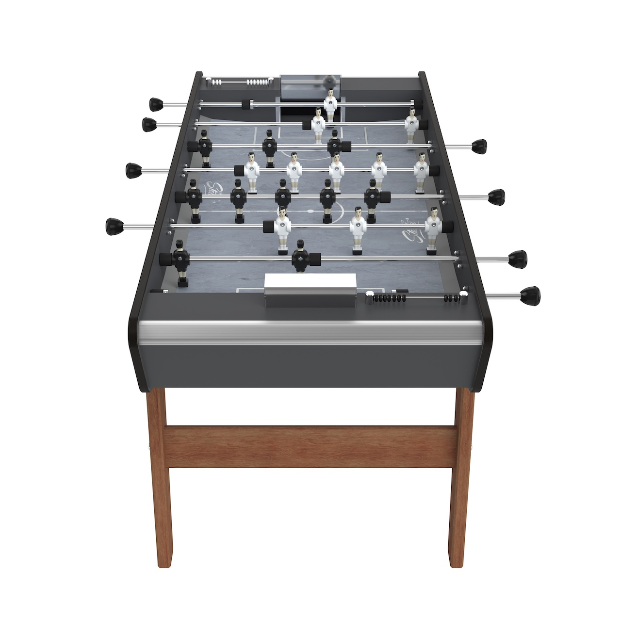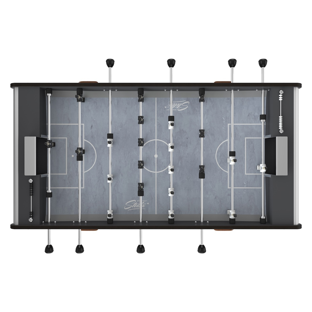 The Stella Loisirs Outdoor foosball table suits due to his weather-proof materials perfect for a year-long outdoor usage. Those materials provide a very good playing-experience as well. The Stella Loisirs Outdoor is equipped with telescope-bars, which run through stainless steel bearings, as well as sideway-ball-returns. Furthermore the aluminium figures are screwed onto the rod individually. The rugged rubber-bumpers provide high endurance as well as good absorbtion-abilities.