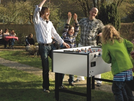 This foosball table for schools is produced in Germany and provides a very good playing experience as well as high-quality and long-lasting materials. This table has a very good price-performance-ratio and is equipped with very steady Lettner-figures. The attachment-parts are very steady and the additional guarantee makes sure that his foosball table holds up against heavy exposure.