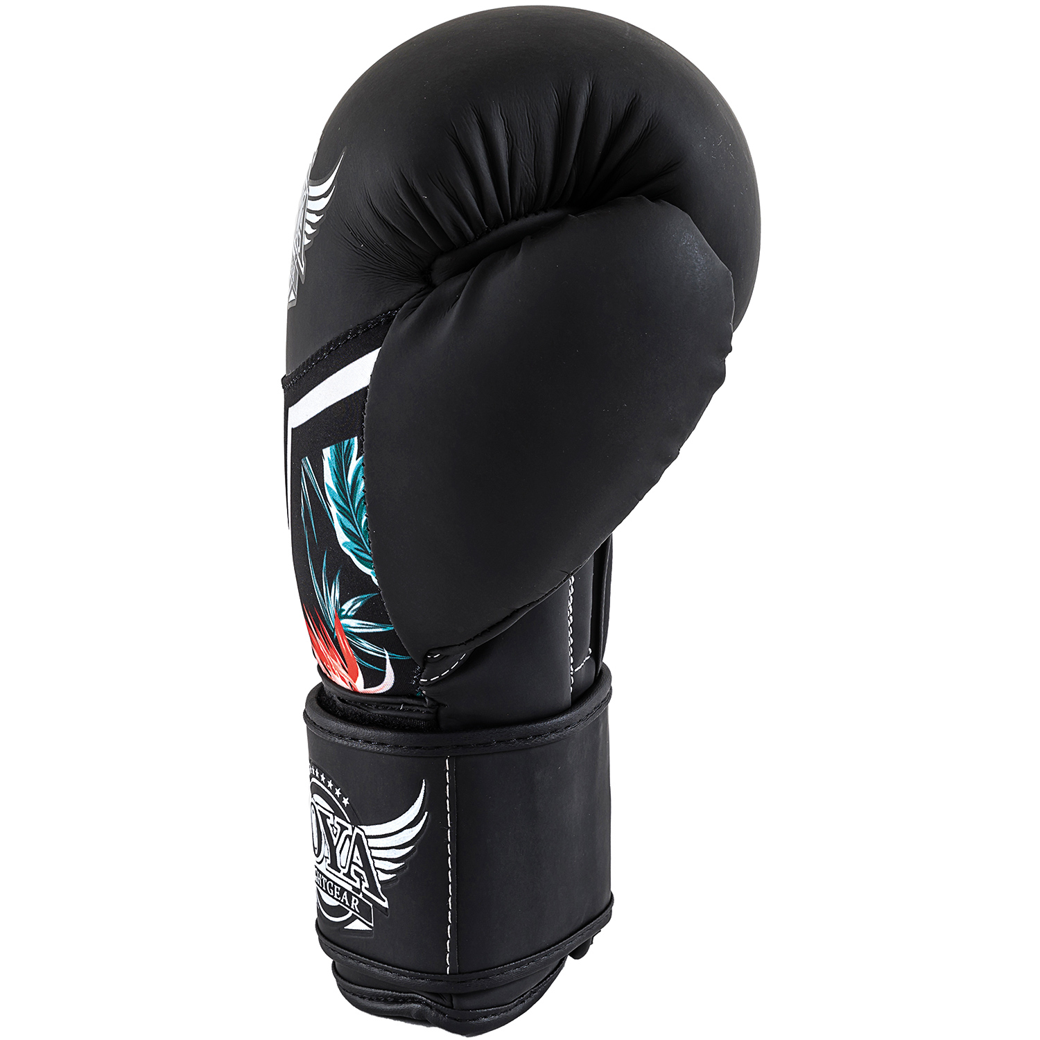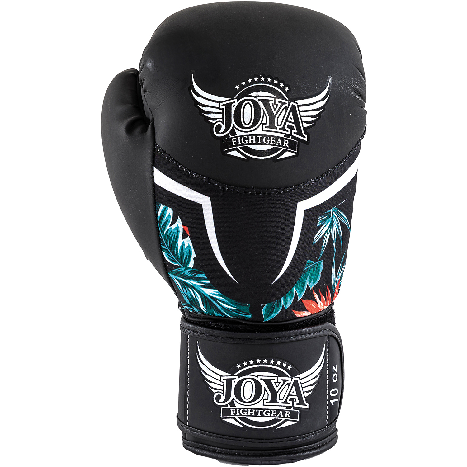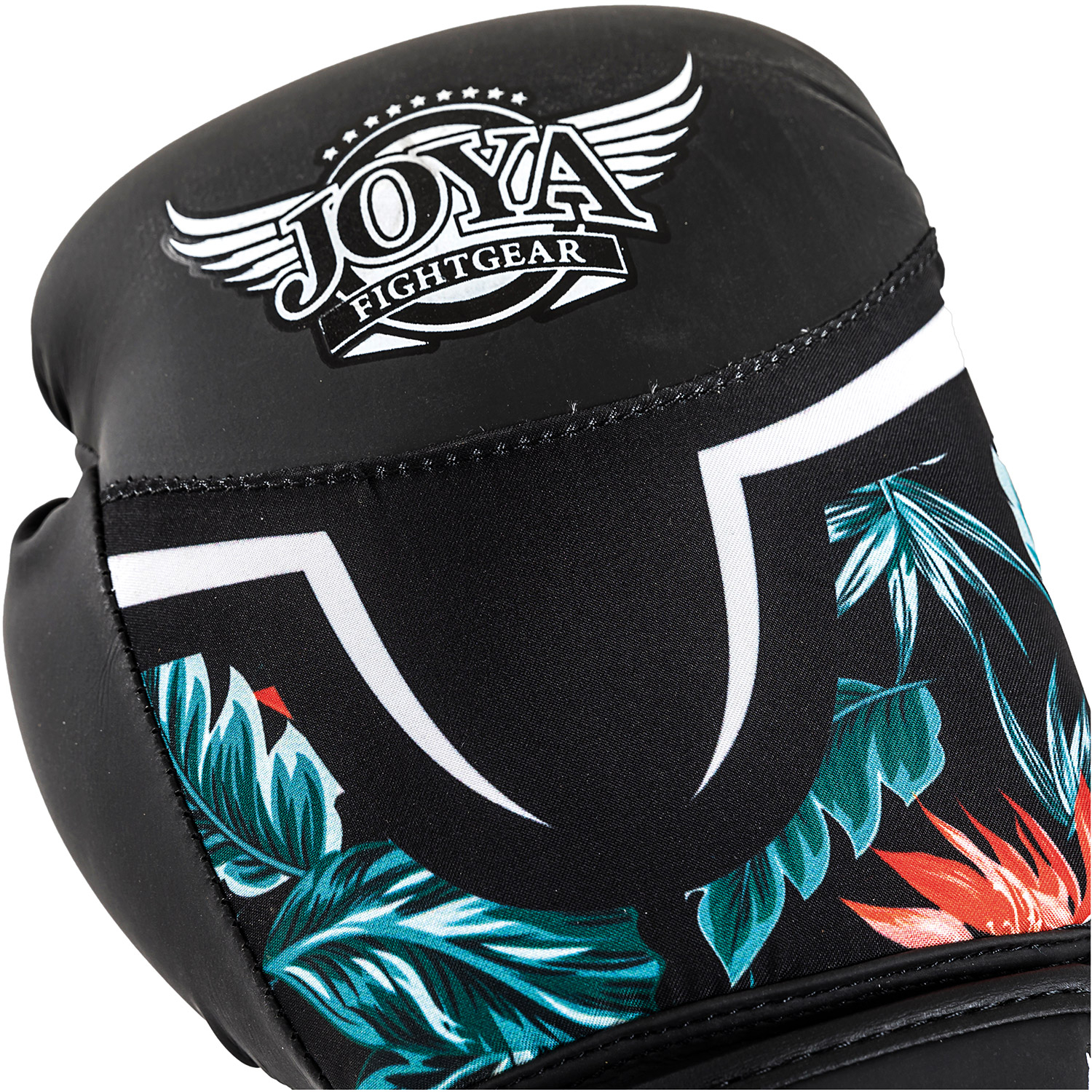 Boxing gloves suitable for boxing and kickboxingSpecially designed for womenPerfect fitMaterial: synthetic leatherColor: blackPrint: TropicalMark: JoyaModel: JW038 TropicalSize: 10 oz