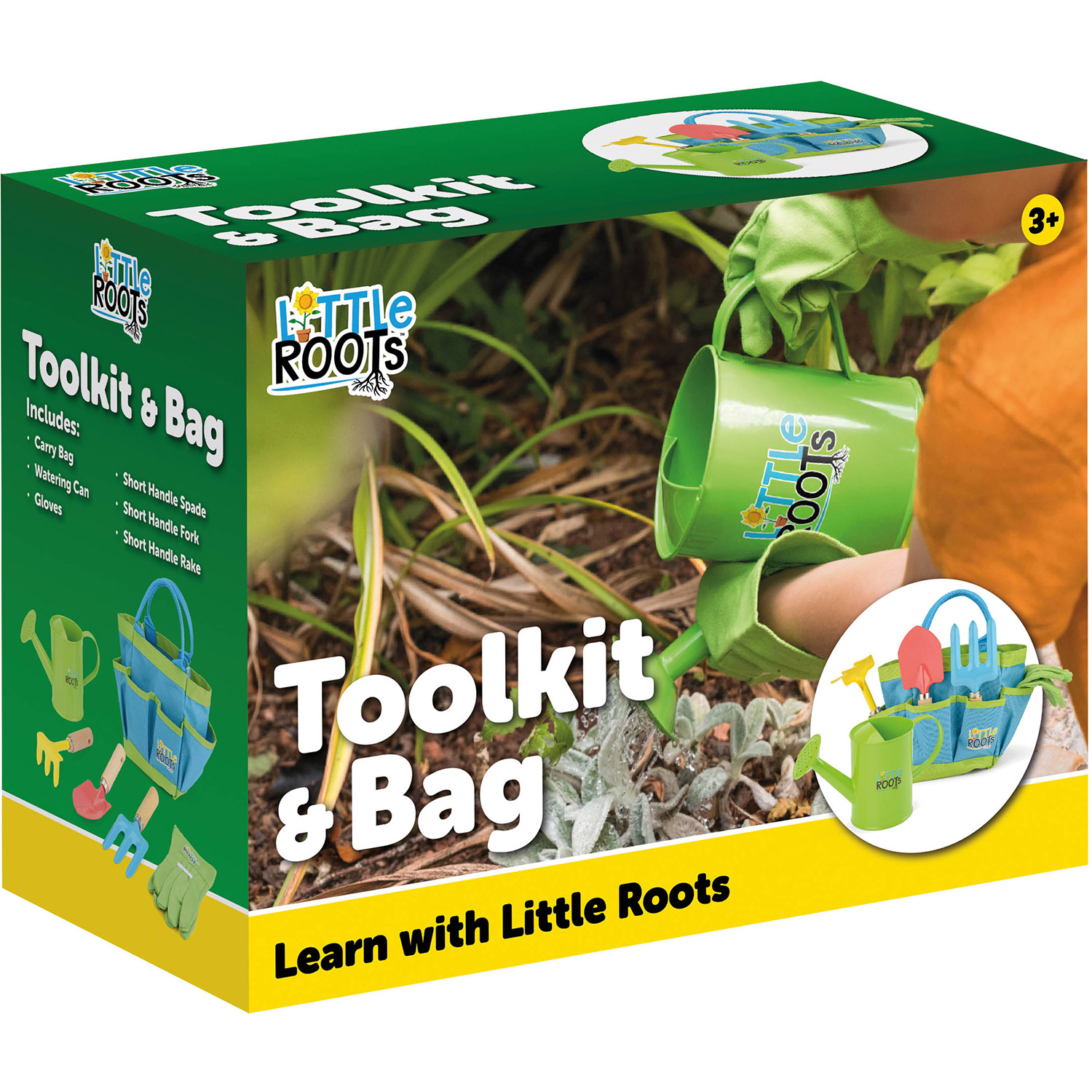 Introduce children to nature in your own garden or balcony. How fun is it to have their own vegetable garden or to help take care of the plants. The Little Roots garden tool set with storage bag includes everything they need, a watering can, gardening gloves, a garden fork, rake and shovel. The Little Roots garden tool set is specially designed for children. The tools are lighter and have smaller wooden handles so children can easily hold and use them. The set comes in a colorful box, so definitely fun to give as a gift.