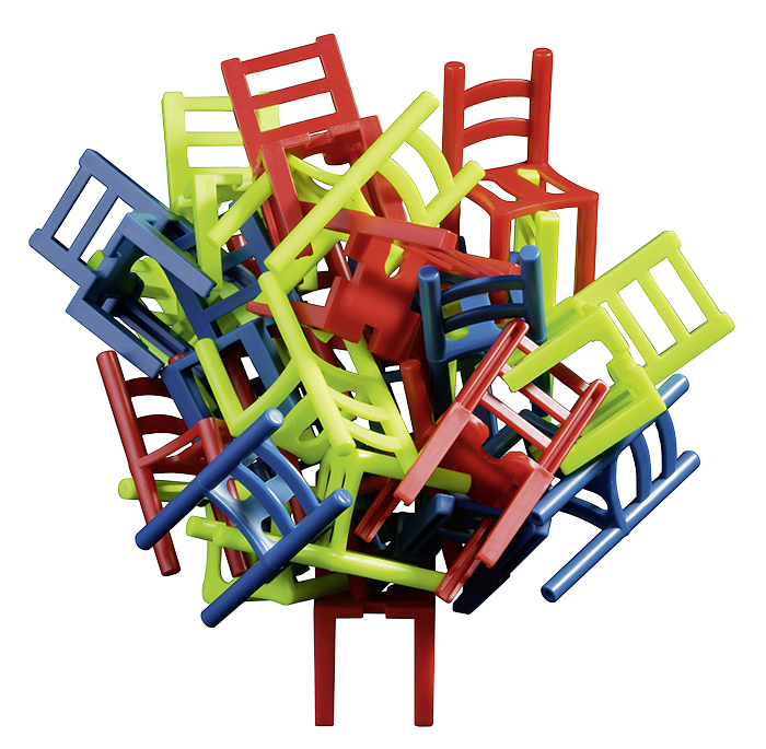 Each chair that falls gives you 1 point. Only the one with the lowest score wins.