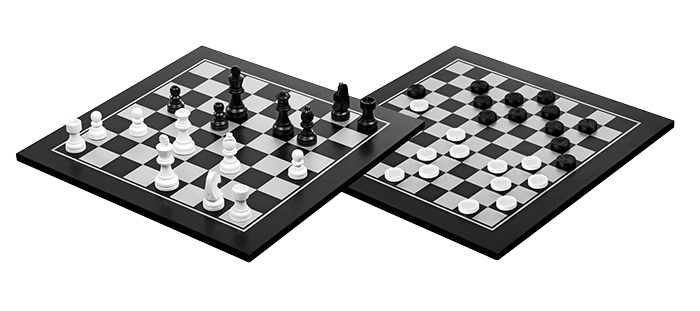 Chess and Draughts are strategic games for 2 persons. It is a game that can be started right away by means of the simple rules. The game board is made of mdf, printed on both sides with a frame around the playing field. The chess pieces have a Staunton design and are made of poplar wood, stained white and black with felt feet.