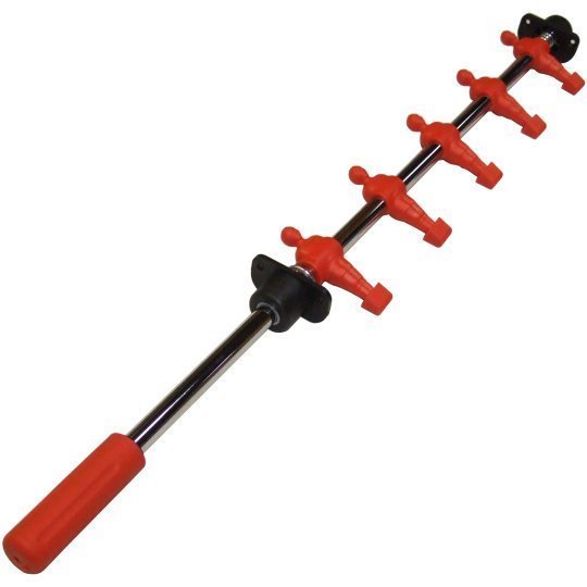 The original Robert Sport 18mm foosball bar is made out of a chromed steal-bar. The pre-installed figures, bumpers, bearings and handles are incliuded in the delivery. The Roberto Sport bar fits for all Roberto Sport foosball tables. Due to this it fits for the Roberto Sport Kombat and Roberto Sport Adrenaline, which are officially licensed by the ITSF.
