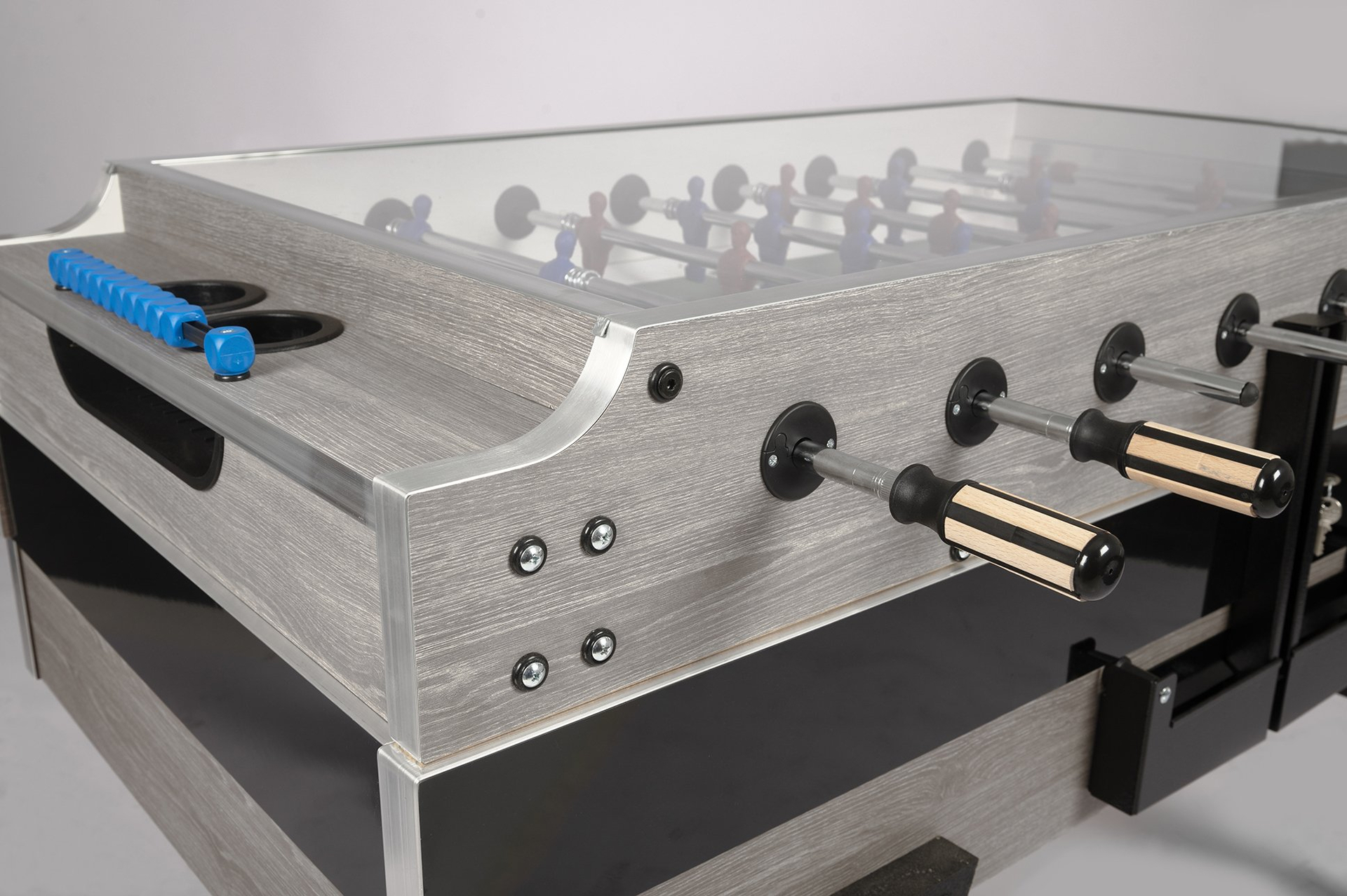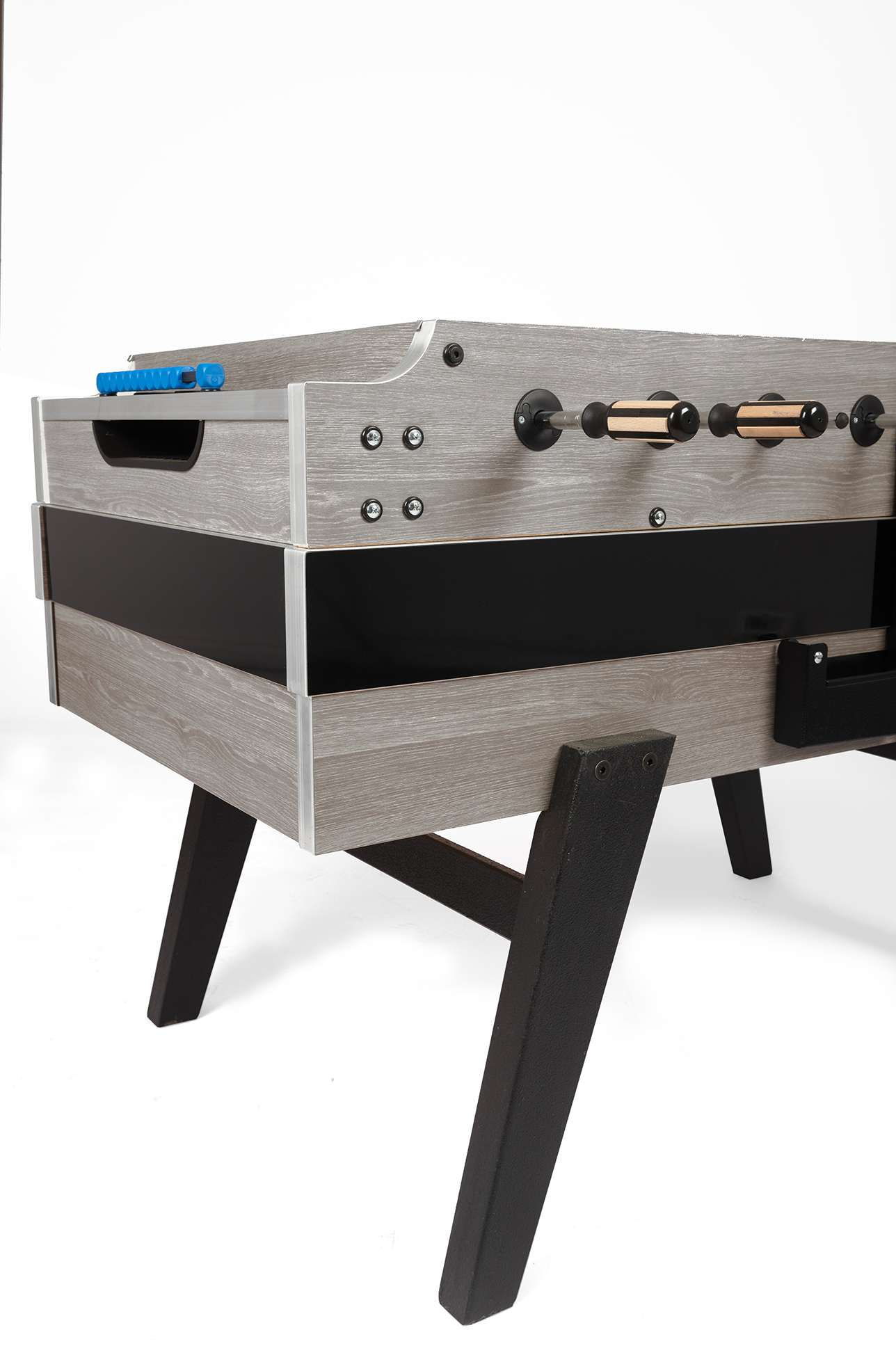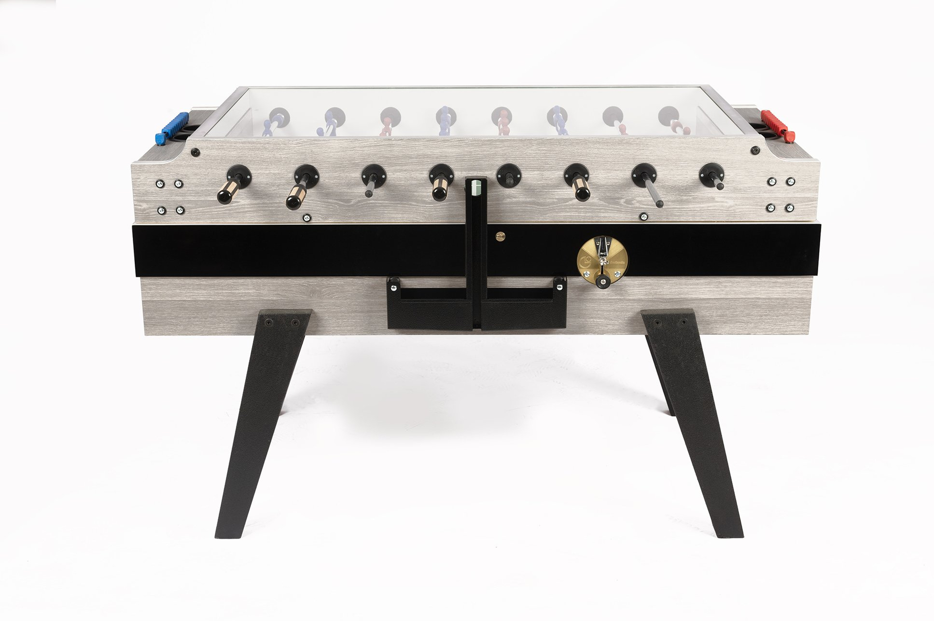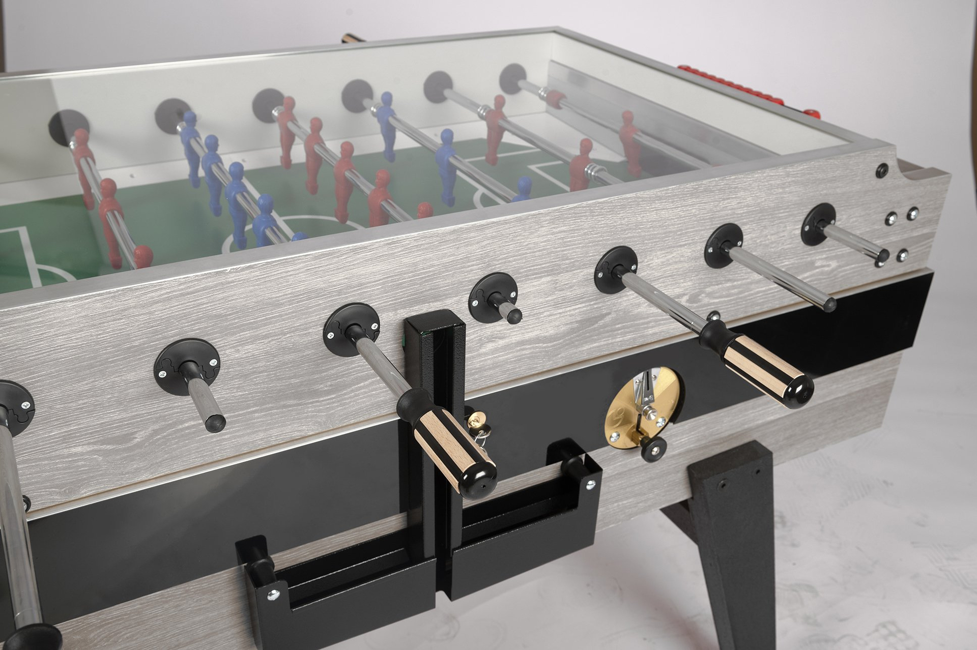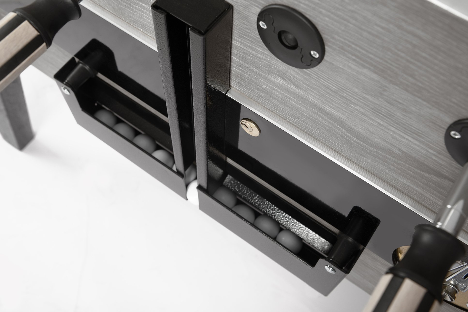 Woodish appearance with the classic inclined legs of the Garlando Coperto foosball table made of 45mm solid wood with black plastic coating. The table also has a safety glass cover which reduces the noise and keeps the inside clean. Equipped with mechanical coin slot (Optional 0.20 EUR / 0,50 EUR / 1,00 EUR / chip). Effortless and easy access to the interior body.