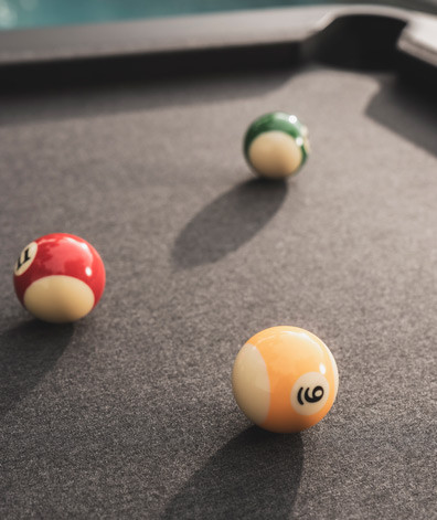 The Hyphen pool billiard table is a feast for the eyes and will attract attention in any garden. Due to the modern and elegant design, the table is looking for its equal on the market. Depending on personal preferences, the 7 ft. table is available in two colors. The stylish white model comes with light gray play cloth and black plastic pockets that skillfully complete the coherent appearance. If you have a preference for darker shades, you will find a suitable solution in the black table model. The use of high-quality materials makes the table weatherproof and a true lightweight for a billiard table. The total weight of 210 kg allows to move the table with a few people and provides the necessary stability for optimal playing conditions. So that the Hyphen can all weather conditions, the steel body was coated with special epoxy resin paint and subjected to an anti-corrosion treatment. For the playing field, the manufacturer relies on a 12 mm thick laminate resin plate cast in one piece. To prevent deformation of the playing surface, it is supported by a sturdy frame from below and from the side. The table is supplied with the matching accessories, consisting of 57.2 mm balls, 2 cues, a triangle each for 8- and 9-ball, billiard chalk and a brush.