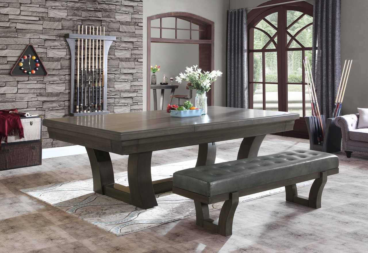 The corpus of the pool table Premium is made from massive wood (side-parts made from pine-wood, bank-frames made from Canadian maple) and provide a unique design. The banks are equipped with ornaments from Avalon. The 8" pool table comes in a modern design and suits for every modern office or leisure-room. The wood is finished in a "Driftwood"-design. The 3-part 25mm slate is adjusted to the substructure. Do to the special form of the substruture the Premium provides additional legroom. The Simonis table-cloth provides perfect ball-movement and is dirt-resistant. The silent pockets are made from black leather.