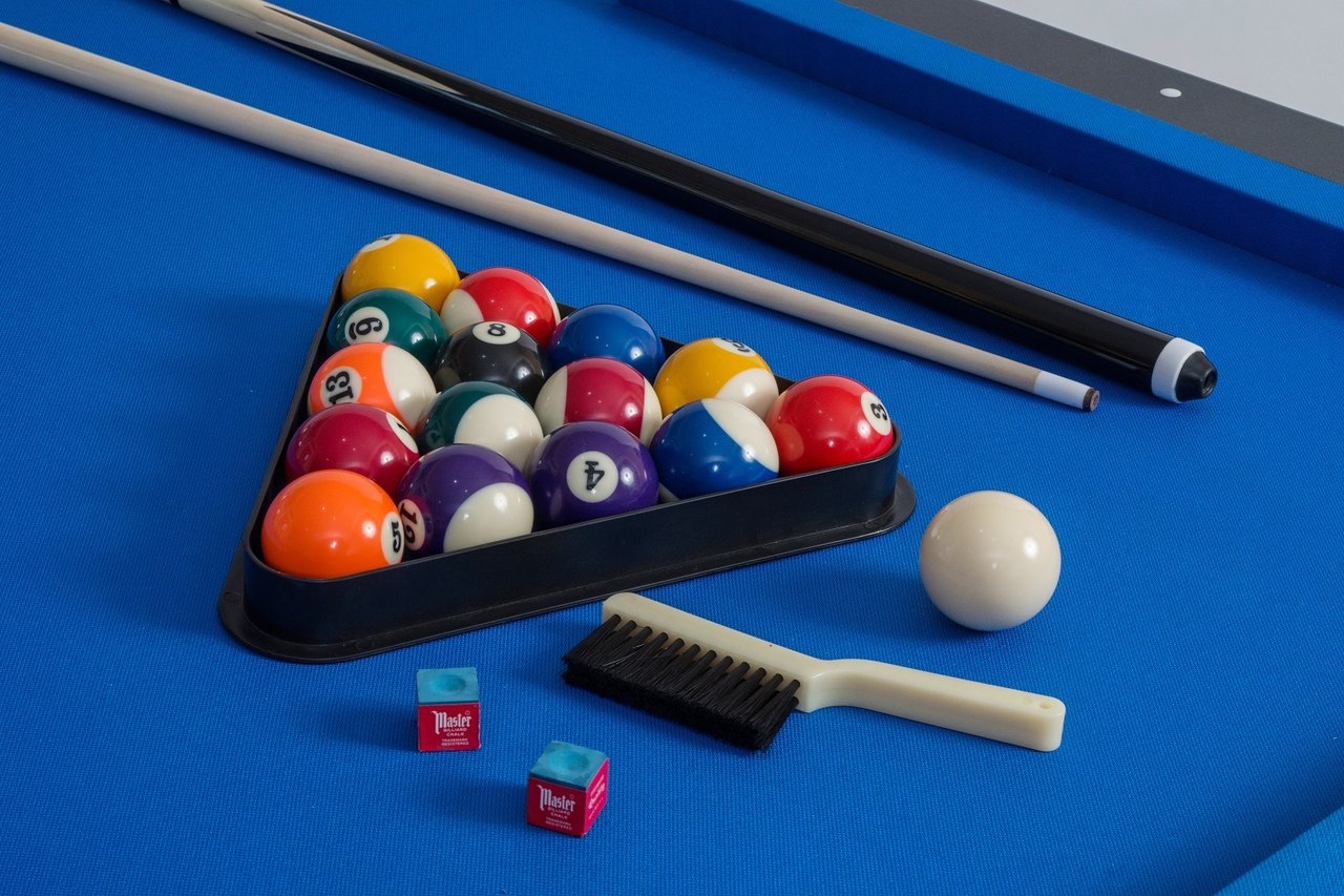 - Zubehörset inkl. (2x 145 cm Queues, 57 mm Kugeln, Kreide, Dreieck, Bürste)