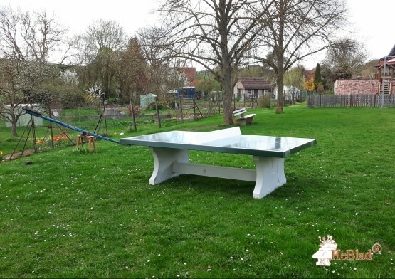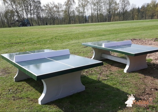 This cornered concrete ping-pong table is made out of one-piece and suits perfect for outdoor utilization. The concrete is additionally enforced with a double steel-inlayer. The concrete withstands all weather-conditions and guarantees fun years long. Furthermore the concrete table tennis tables are GS-certified by the TÜV-Nord.