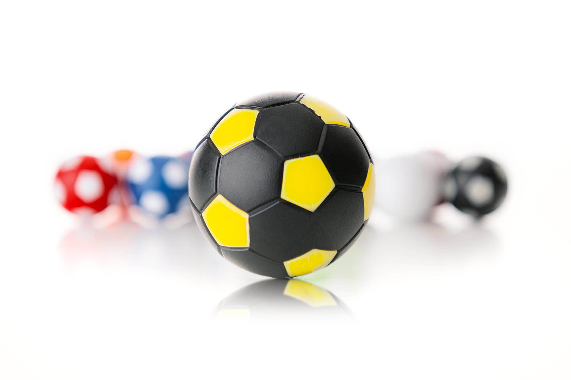 The WINSPEED foosball balls are produced in an elaborate two-colour injection moulding process. In this process, the colours of the balls are not simply printed on, but the raw material is dyed accordingly. The raw material used is highly impact-resistant polystyrene, a thermoplastic material,
