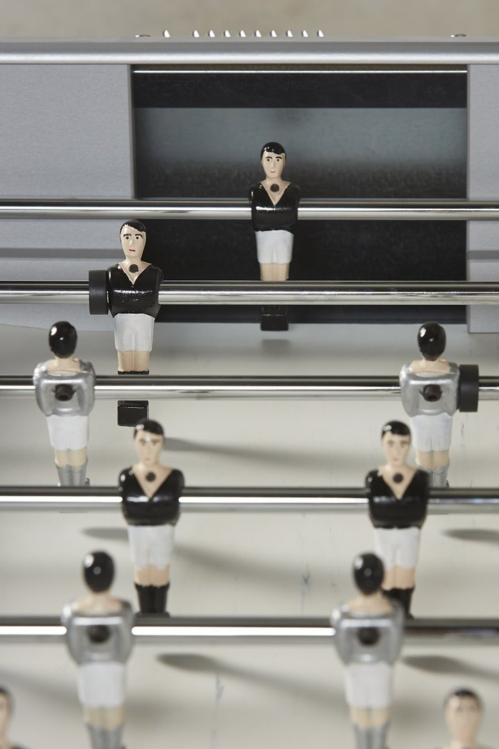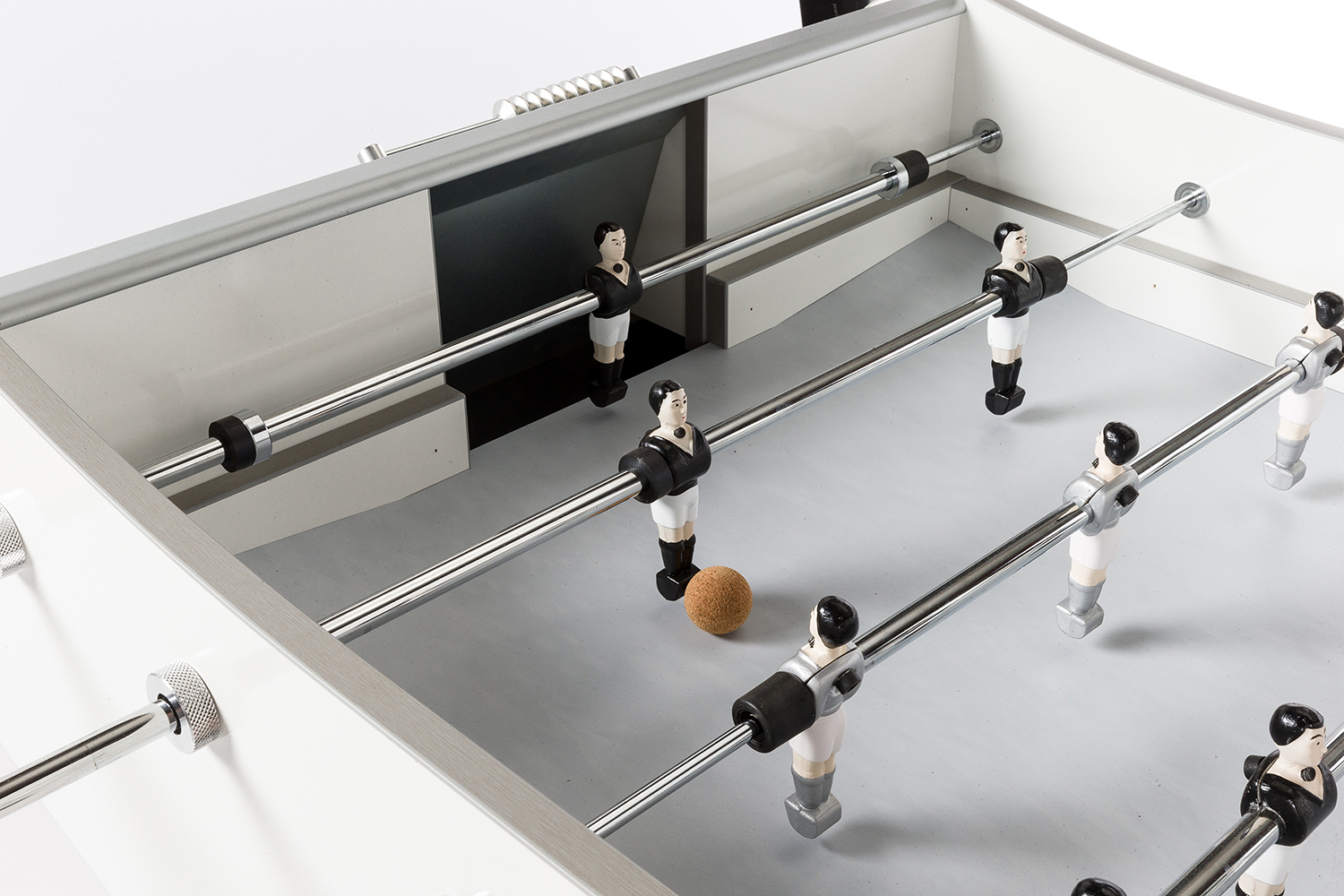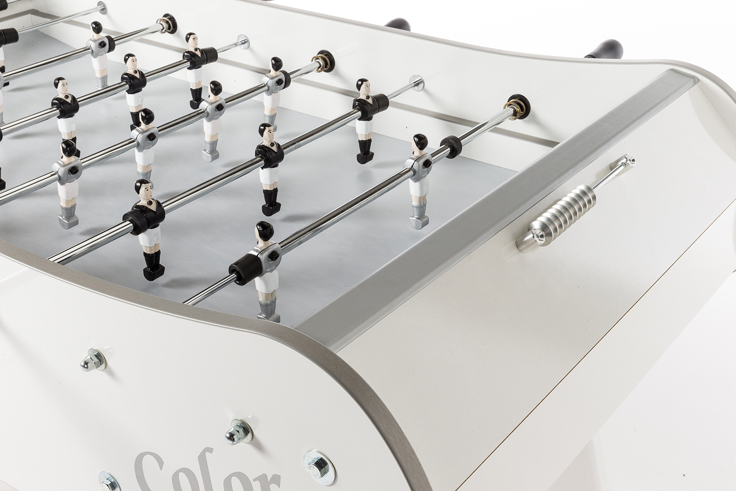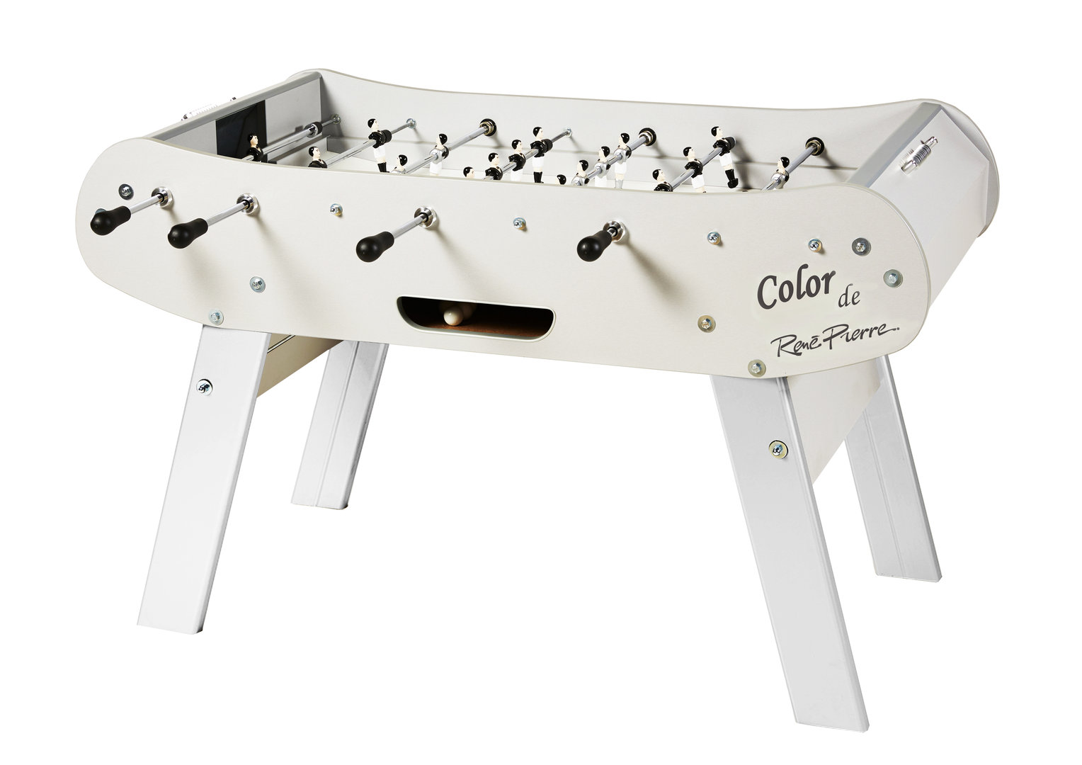 The René Pierre Color foosball table is the newest model by René Pierre. Due to its solid manufacturing and the enforced framework it provides high steadiness. The metal-figures are hand-painted and the telescopic-bars are equipped with ergonomic handles. Furthermore there are 2 scoring units. The lenoleum-playing-surface provides a smooth playing-experiences and enables high presicion while shooting and passing.