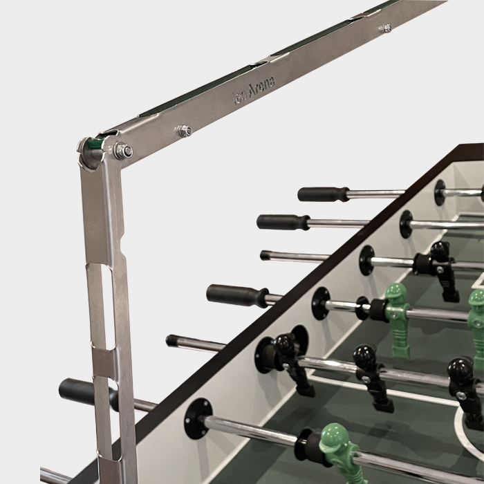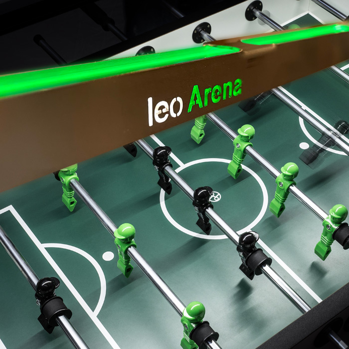 Die leo_arena Kickerlampe lässt sich problemlos auf alle gängigen Kickertischmodelle aufbringen. Durch die 120 hochwertigen eingebauten LED-Leuchten erstrahlt das Spielfeld Ihres Kickers bis in die letzte Ecke. Wärmeentwicklung ist hierbei ausgeschlossen. Die mit nur 750 Gramm extrem leichte Lampenkonstruktion ist außerdem faltbar und kann somit problemlos und platzsparend verstaut werden. Die Lampe wird hierbei durch einen zwischen Tor und Torzähler geschraubten Magneten fixiert. Die Lampe kann auf Anfrage mit Akkubetrieb geliefert werden.